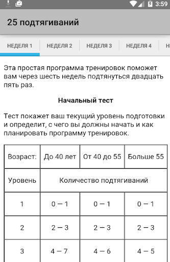 Здесь описаны все базы. Начиная от не в форме новичка, который не может даже ни разу подтянуться с собственным весом, вплоть до продвинутого мускулистого человека, который может сделать несколько подходов подтягиваний с отягощением!