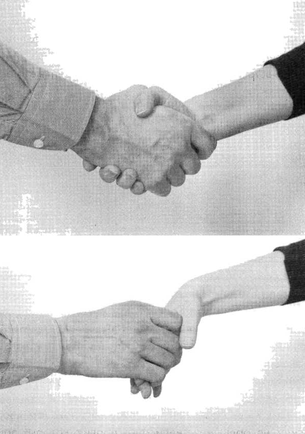 При рукопожатии значение имеет не только та рука, которой вы здороваетесь, но и левая рука (если вы правша), так как она гораздо более точно выражает отношение к собеседнику.