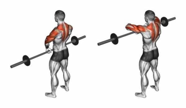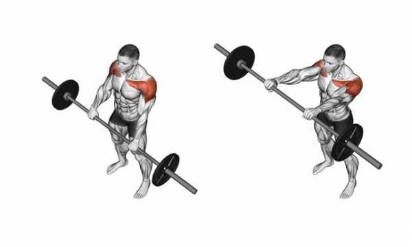 - Наконец, для дельт подойдут жим штанги стоя/сидя и тяга штанги к подбородку.