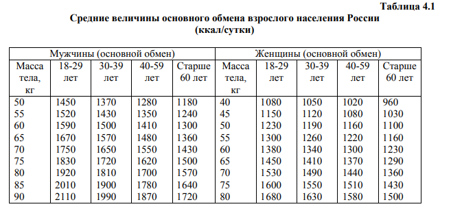 У человека весом 50 кг РЗЭ составляет 1,459 ккал.