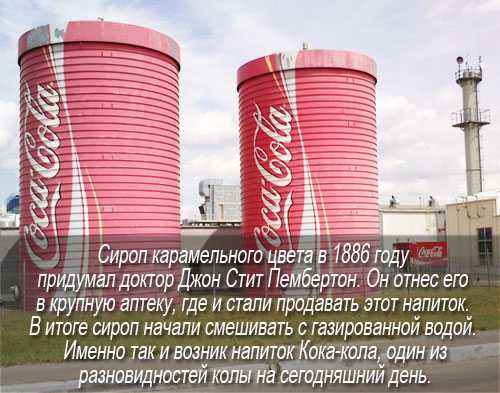 Сироп карамельного цвета в 1886 году придумал доктор Джон Стит Пембертон. Он отнес его в крупную аптеку, где и стали продавать этот напиток. В итоге сироп начали смешивать с газированной водой. Именно так и возник напиток Кока-кола, один из разновидностей колы на сегодняшний день.