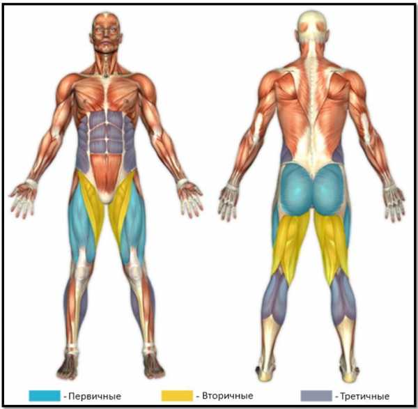 Π’Π°ΠΊΠΆΠ΅ ΠΌΠ½ΠΎΠ³ΠΎΠ΅ Π·Π°Π²ΠΈΡΠΈΡ ΠΎΡ ΠΏΡΠ°Π²ΠΈΠ»ΡΠ½ΠΎΠΉ ΠΏΠΎΡΡΠ°Π½ΠΎΠ²ΠΊΠΈ Π½ΠΎΠ³. ΠΡΠ»ΠΈ ΠΏΠΎΡΡΠ°Π½ΠΎΠ²ΠΊΠ° Π½ΠΎΠ³ ΡΠ·ΠΊΠ°Ρ, ΡΠΎ Π²ΡΡ Π½Π°Π³ΡΡΠ·ΠΊΠ° Π±ΡΠ΄Π΅Ρ Π½Π° Π»Π°ΡΠ΅ΡΠ°Π»ΡΠ½ΡΡ Π³ΠΎΠ»ΠΎΠ²ΠΊΡ ΠΊΠ²Π°Π΄ΡΠΈΡΠ΅ΠΏΡΠ°. ΠΡΠ»ΠΈ ΠΏΠΎΡΡΠ°Π½ΠΎΠ²ΠΊΠ° Π½ΠΎΠ³ ΡΠΈΡΠΎΠΊΠ°Ρ, Π½Π°Π³ΡΡΠ·ΠΊΠ° Π±ΡΠ΄Π΅Ρ ΠΏΡΠΈΡ ΠΎΠ΄ΠΈΡΡΡΡ Π½Π° Π°Π΄Π΄ΡΠΊΡΠΎΡΡ ΠΈ ΠΌΠ΅Π΄ΠΈΠ°Π»ΡΠ½ΡΡ Π³ΠΎΠ»ΠΎΠ²ΠΊΡ ΠΊΠ²Π°Π΄ΡΠΈΡΠ΅ΠΏΡΠ°. ΠΡΠΈ Π²ΡΡΠΎΠΊΠΎΠΉ ΠΏΠΎΡΡΠ°Π½ΠΎΠ²ΠΊΠ΅ Π½ΠΎΠ³, Π²ΡΡ Π½Π°Π³ΡΡΠ·ΠΊΠ° ΠΏΠ΅ΡΠ΅ΠΉΠ΄Π΅Ρ Π½Π° ΡΠ³ΠΎΠ΄ΠΈΡΠ½ΡΠ΅ ΠΌΡΡΡΡ ΠΈ Π±ΠΈΡΠ΅ΠΏΡΡ Π±Π΅Π΄Π΅Ρ. ΠΡΠΈ Π½ΠΈΠ·ΠΊΠΎΠΉ ΠΏΠΎΡΡΠ°Π½ΠΎΠ²ΠΊΠ΅ Π½ΠΎΠ³ Π½Π°Π³ΡΡΠ·ΠΊΠ° Π±ΡΠ΄Π΅Ρ Π½Π° ΠΏΠ΅ΡΠ΅Π΄Π½ΡΡ ΠΏΠΎΠ²Π΅ΡΡ Π½ΠΎΡΡΡ Π±Π΅Π΄Π΅Ρ.